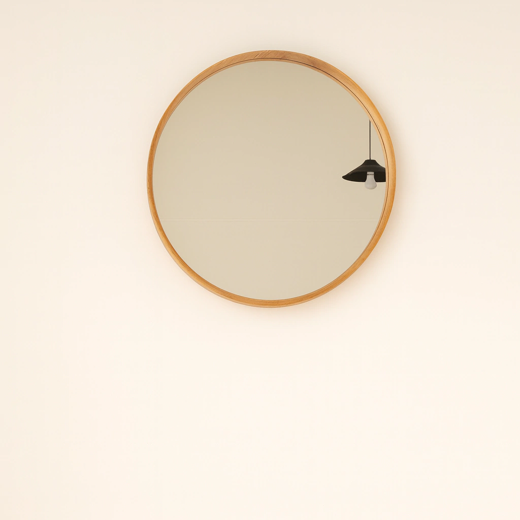 Hecho en madera maciza de paraíso, con un marco curvado a vapor que suaviza sus líneas y le aporta solidez. El laqueado realza el tono natural de la madera y la protege de la humedad, permitiendo su uso en distintos ambientes. El cristal de 3 mm ofrece una imagen clara, sin deformaciones.